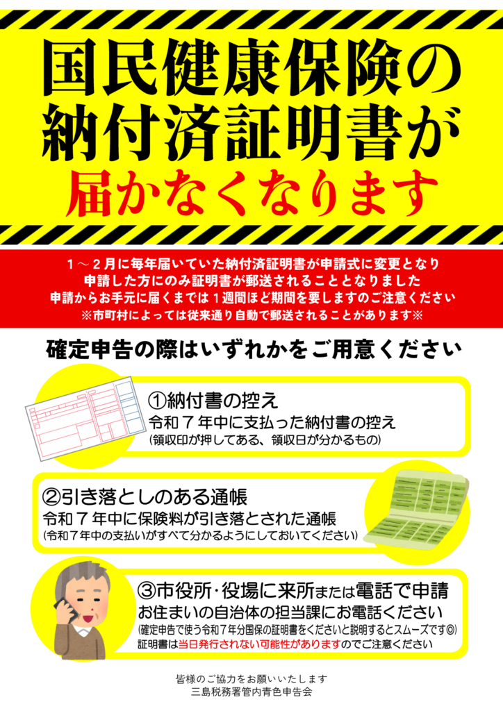 国民健康保険の納入済証明書が届かない時は