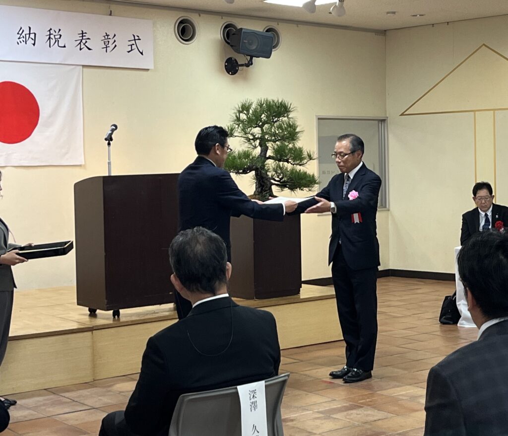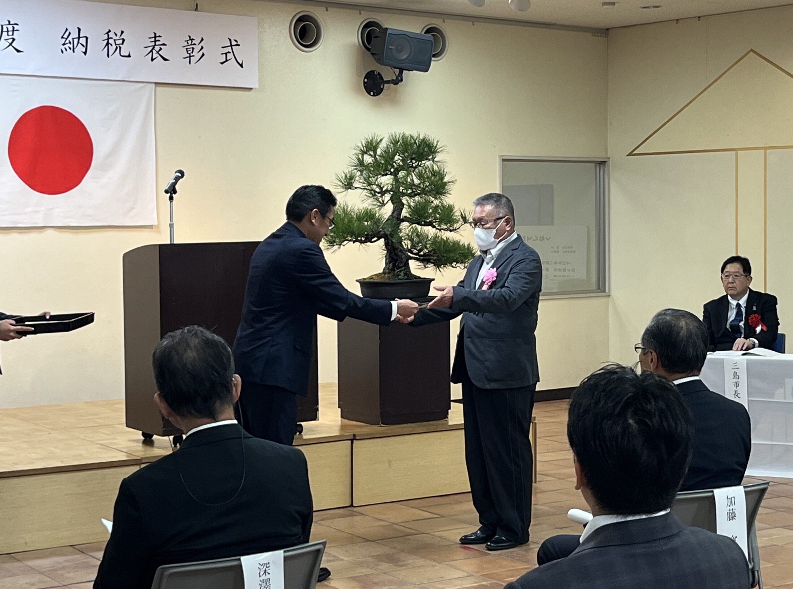 お知らせ, 事業報告 令和7年度納税表彰式 by 事務局 • 2025年12月17日 令和7年11月10日(月)に三島商工会議所1F さんしんみゅうくんホールにて、納税表彰式が開催されました。 長年にわたる御功績に対して、以下のとおり関係者お立ち会いの上、厳正に執り行われましたことをご報告いたします。 三島税務署長表彰 U企画 打矢 章雄 様 三島税務推進協議会長表彰 税理士 加藤 寛治 様 当会に格別のご協力を賜り感謝しお礼申し上げます。 又、心よりお慶び申し上げます。 三島税務署長表彰 U企画 打矢 章雄様 三島税務推進協議会長表彰 税理士 加藤 寛治様